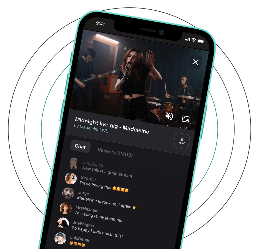 Allow your content creators to create ad-hoc or scheduled live streams, send individual offers and engage with their audience during live streams in creative ways.
